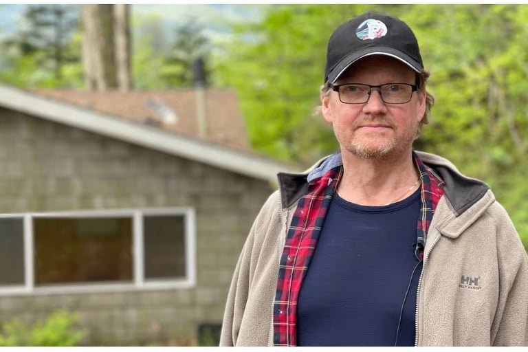 Mike Armstrong and his wife have been ordered to pay commission to their former real estate agency after their buyer disappeared before the closing date for two cabins on Lake Errock. (Christian Amundson/CBC News)